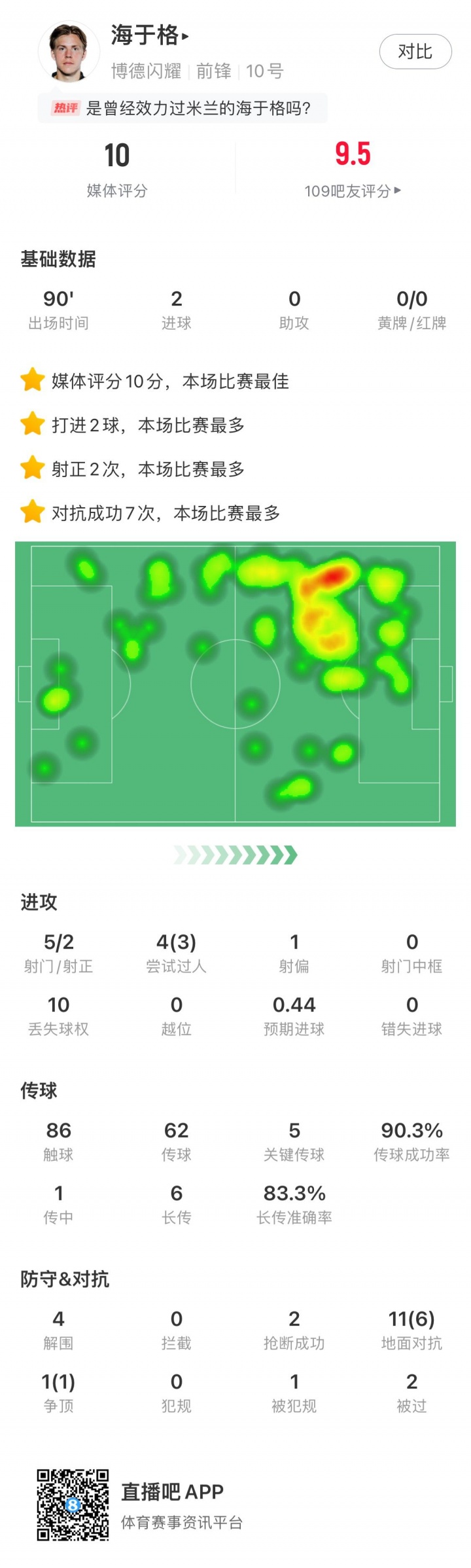 25岁为时不晚!海于格欧冠灵性双响+获评10分,昔日闯荡米兰失败