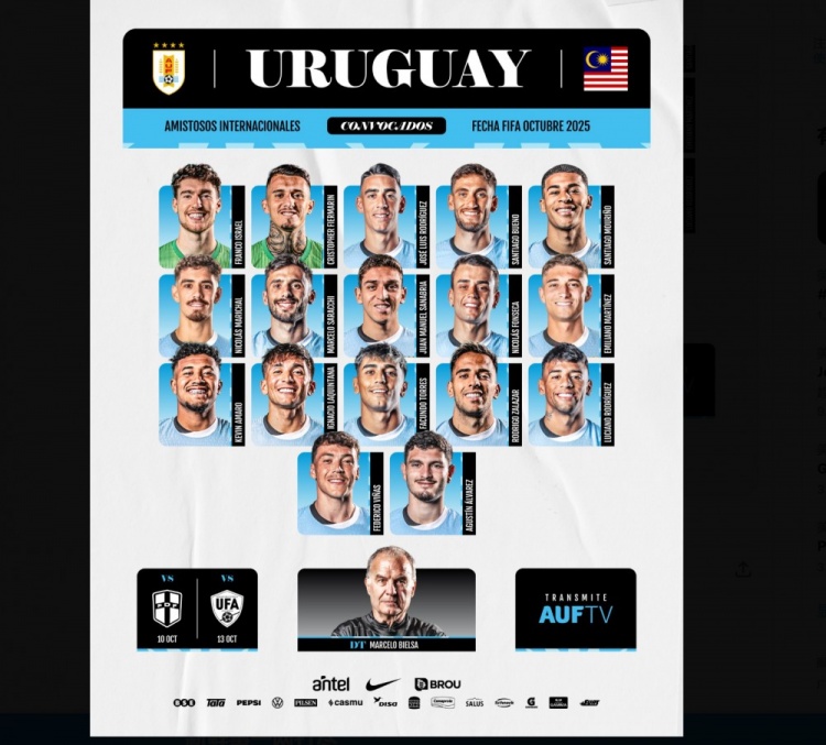 10月6日讯  为了迎接即将到来的国际比赛日,乌拉圭公布了新一期的国家队大名单,巴尔韦德、阿劳霍、本坦库尔等缺席。