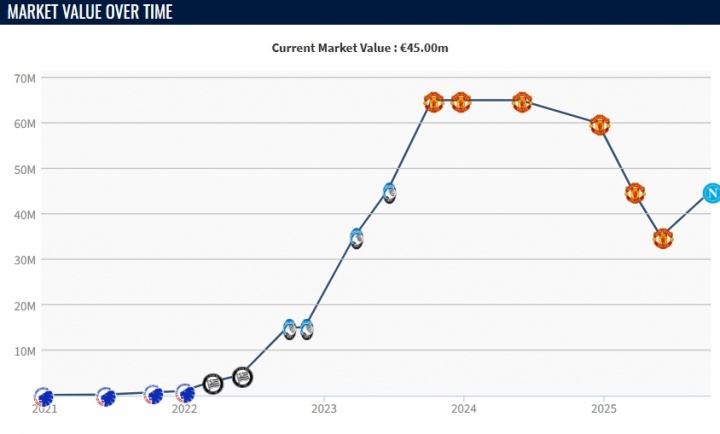 10月07日讯 今日德转更新意甲球员最新身价,22岁那不勒斯前锋霍伊伦身价上涨1000万,达到4500万欧元。