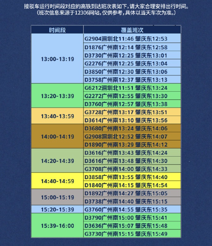 接驳车运行时间段对应的高铁到达班次表(见图2)