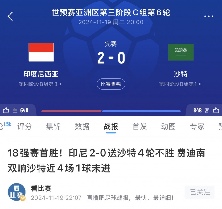 伊万:我们原本的计划就是保住出线名额,不幸的是发生了一件意外,就是沙特在印尼不幸失利,这当然就严重打乱了我们在最后一轮晋级世预赛附加赛的计划。我们两次击败巴林,并在主场战胜了印尼,我们知道在印尼客场的比赛是一场关键之战,但很不幸,因为一粒本不应该判罚的点球导致我们在客场失利了。