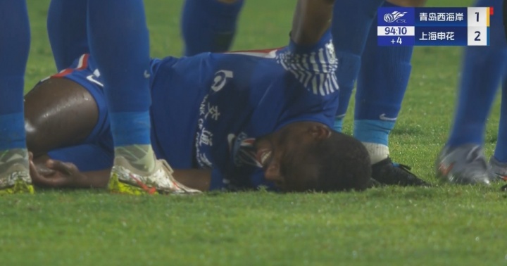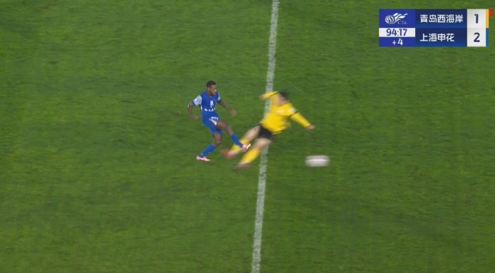 10月17日讯 申花vs西海岸最后时刻,赵宏略双腿跳起蹬踏马纳法,差点吃到西海岸第三红!