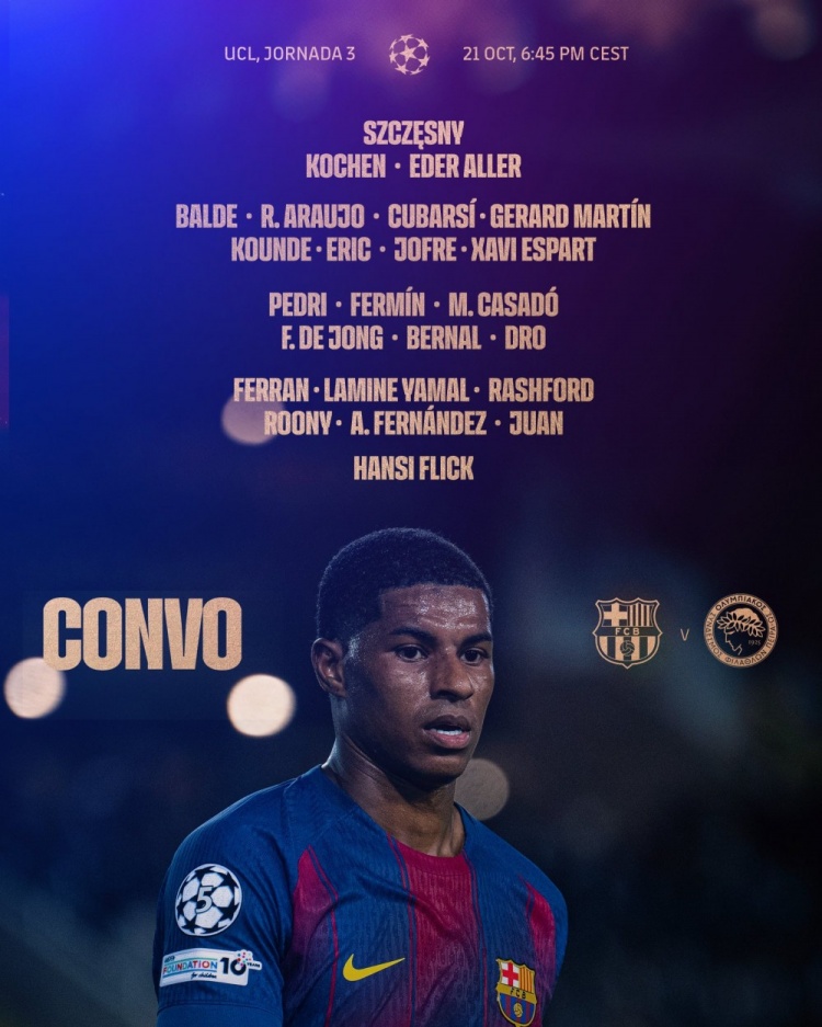 前锋:费兰-托雷斯、亚马尔、拉什福德、巴德吉、托尼-费尔南德斯、胡安-埃尔南德斯