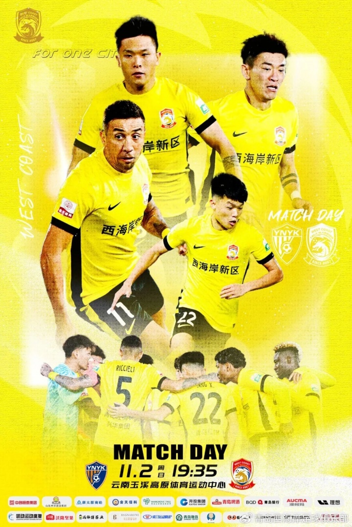 玉昆vs西海岸首发:奥斯卡、侯永永先发,西海岸20岁门将首秀