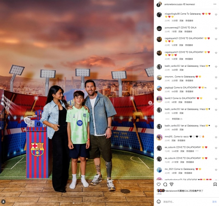 而这则新闻在土耳其国内无疑引发了极大的关注。在梅西社媒为儿子蒂亚戈庆祝生日的动态下,涌入了相当多的加拉塔萨雷球迷刷屏:“来加拉塔萨雷!”