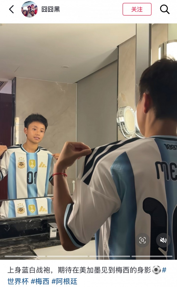 张琳艳在社媒写道:“上身蓝白战袍,期待在美加墨见到梅西的身影。”