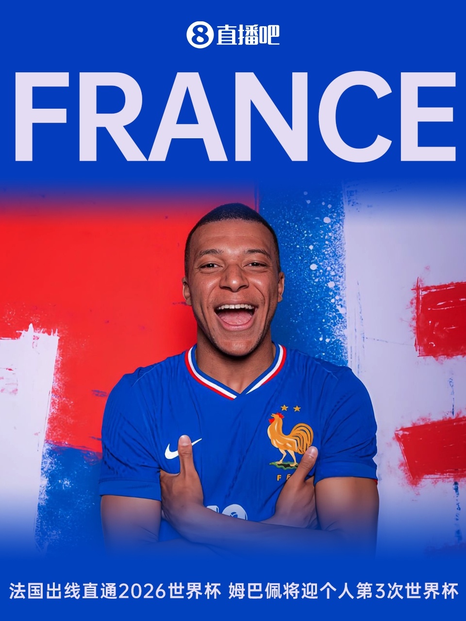 11月14日讯 世预赛欧洲区小组赛D组第5轮,法国4-0战胜乌克兰,锁定小组头名,提前一轮锁定2026世界杯!