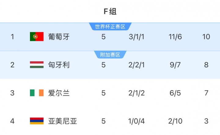 葡萄牙目前10分领跑世预赛小组积分榜,末轮主场对阵垫底的亚美尼亚,只需赢球即可锁定世界杯正赛资格。如果匈牙利不胜,葡萄牙甚至打平也可确保直接晋级。
