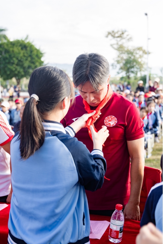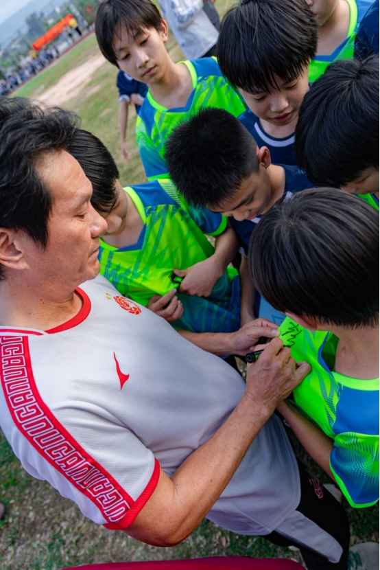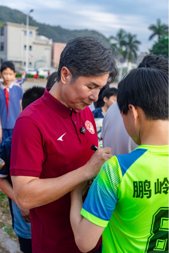 出席完纪念活动,彭伟国便又马不停蹄地赶回到揭阳,准备自己的另一场公益活动——广州岁月明星足球俱乐部传承校园足球公益行(揭西站),他和弟弟彭伟军将为等候在那里的揭西县五云镇鹏岭小学的学生上一堂特别的足球公开课。