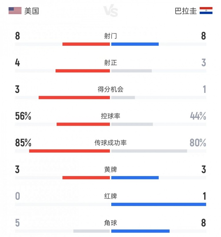 此役上半场第4分钟阿夫斯坦助攻雷纳破门,美国队取得领先,第10分钟阿尔塞为巴拉圭扳平比分,下半场第71分钟巴洛贡攻入制胜进球,最终美国2-1战胜巴拉圭。