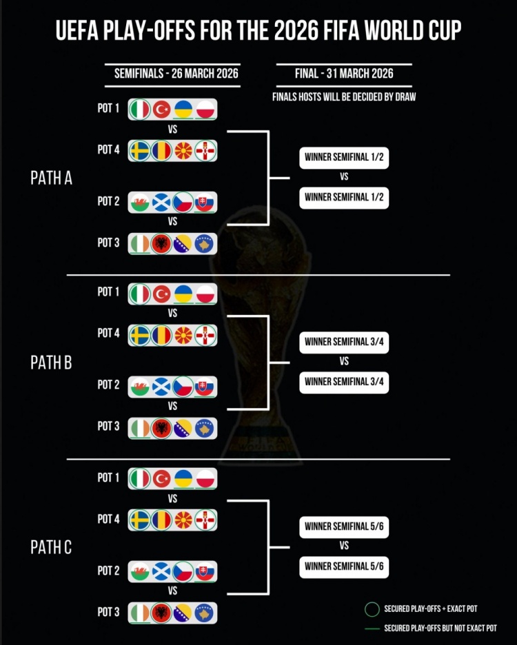 Football Rankings预测欧洲世预赛附加赛分档: