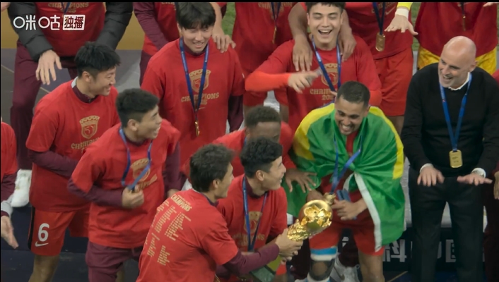 我们是冠军武磊、王燊超共同捧起火神杯,海港中超第4冠