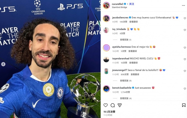库库雷利亚在赛后被欧冠官方评选为本场MVP,他也通过社媒晒出了自己同MVP奖杯的合照。