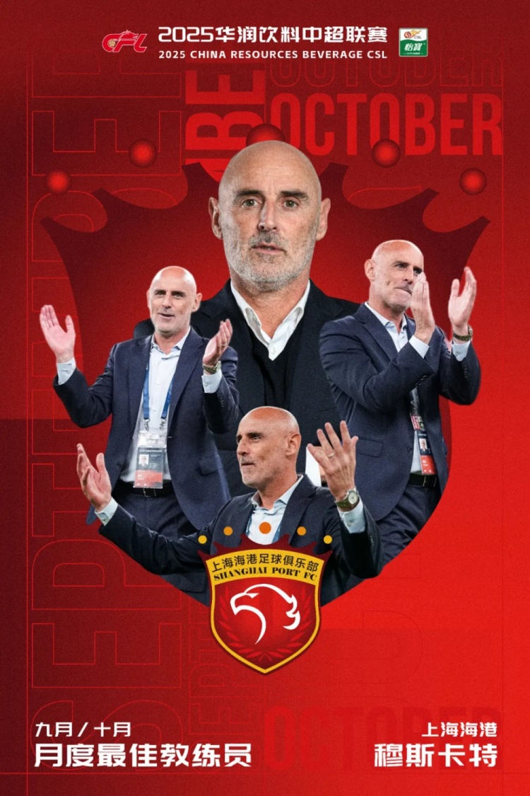 11月26日讯 中超联赛官方公布了9月、10月最佳教练人选,上海海港主帅穆斯卡特当选。