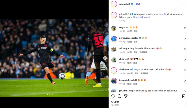 他也在赛后通过社媒晒出了自己的进球瞬间照,并配文:“当你意识到你的时机已至⚽️多么精彩的瞬间!多么精彩的比赛!”
