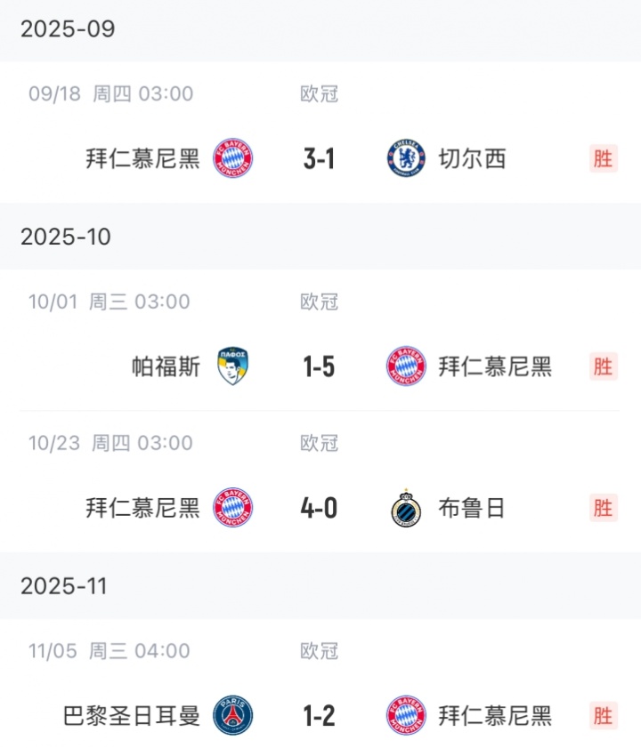拜仁此前欧冠战绩: