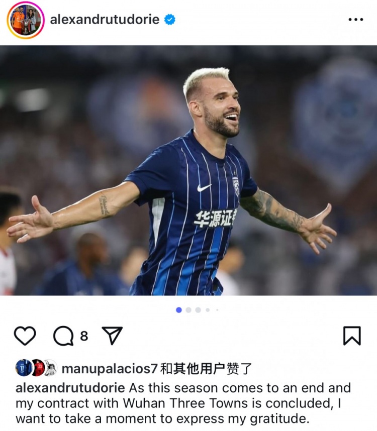 今年年初加盟武汉三镇的罗马尼亚外援图多列,本赛季共代表武汉三镇出战26场,贡献10个进球。他在社媒告别写道: