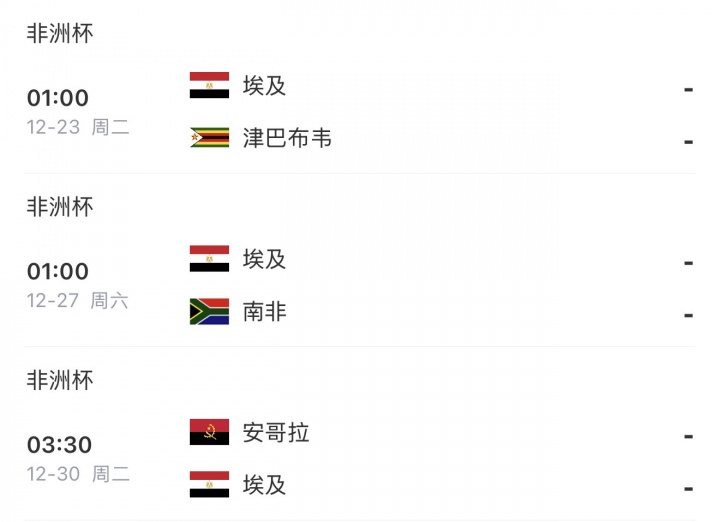 2025非洲杯将于12月21日至2026年1月18日在摩洛哥举办,埃及与津巴布韦、南非、安哥拉同组。