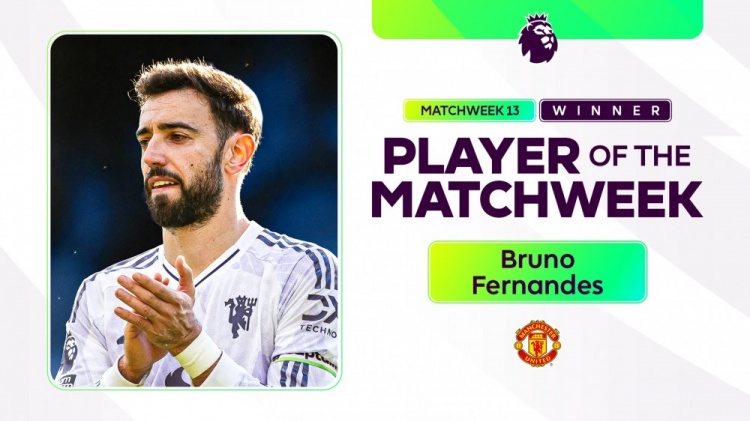 这是曼联球员本赛季第三次被评选为英超单轮最佳,B费以32%的票数微弱优势超过切尔西队长里斯·詹姆斯(30%),其他六位提名球员的票数分别是:福登(16%)、佳夫(7%)、勒费(6%)、伊戈尔·蒂亚戈(5%)、大马丁(3%)和泰特(1%)。