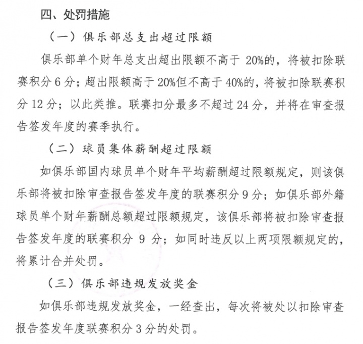 如俱乐部降级,在其降至低级别联赛的第一年,年度总 支出可以超出降级后所属联赛俱乐部单个财年总支出限额, 但不得超过上一年度俱乐部的实际总支出金额。