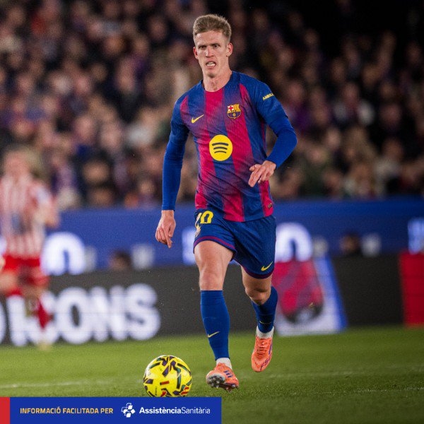 一线队球员达尼·奥尔莫在昨日对阵马德里竞技的比赛中左肩脱臼。经相关检查后,已决定采取保守治疗方案。预计恢复时间约为一个月。