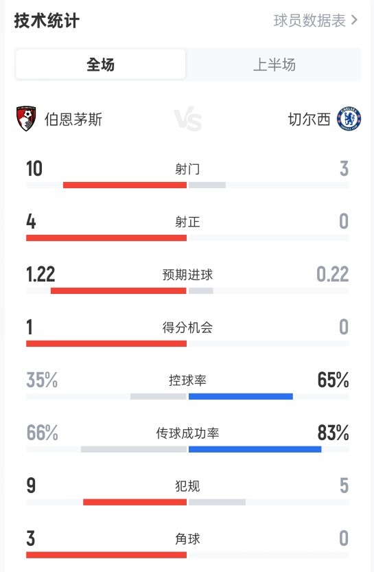 12月6日讯 2025-26赛季英超联赛第15轮,伯恩茅斯主场迎战切尔西,上半场两队暂0-0战平。