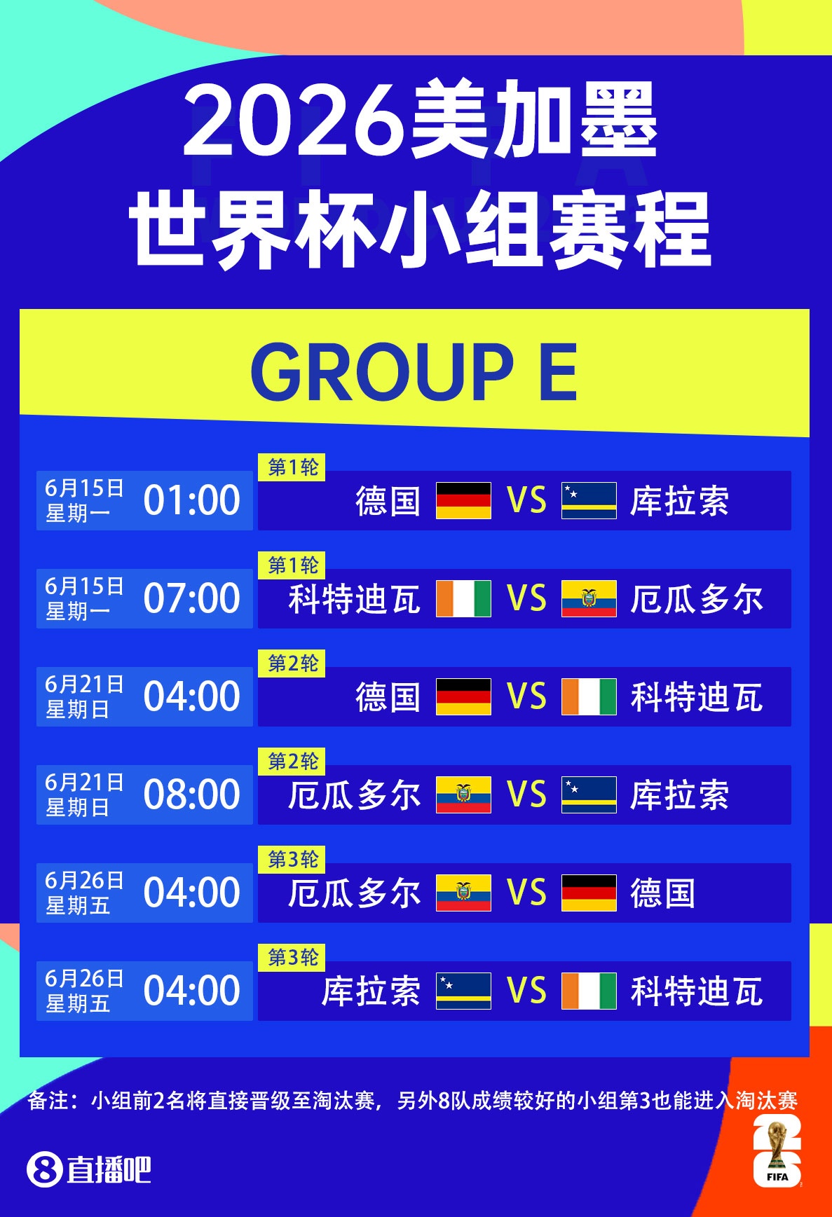 12月7日讯 2026世界杯赛程公布,E组赛程确定。