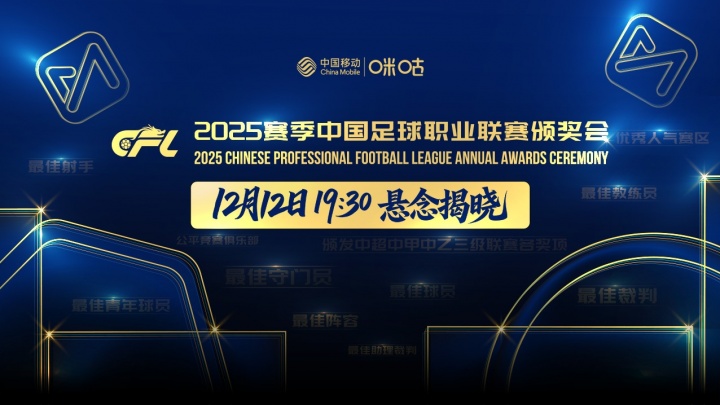 12月11日讯 官方消息,2025赛季中国职业联赛颁奖典礼将在明日19:30进行。这将是中国职业联赛颁奖典礼时隔六年重新回归线下举办。