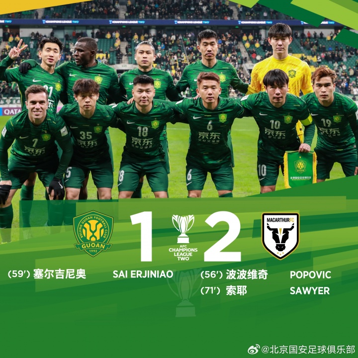 亚冠二级联赛小组赛第6轮,北京国安主场1-2负于麦克阿瑟FC