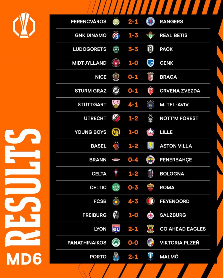 欧联积分榜:里昂、中日德兰、维拉、贝蒂斯前四,尼斯全败垫底