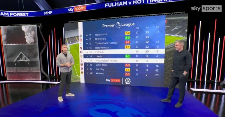 在周一晚上的节目开始阶段,琼斯再次抓住机会调侃卡拉格。在天空体育英超频道的X账号上分享的一段视频中,琼斯说:“今晚杰米·卡拉格独自一人在这里,这真是个大惊喜,因为几周前大家还以为他的腿已经不行了。”卡拉格听到后忍不住笑了起来,但琼斯迅速转移了话题。