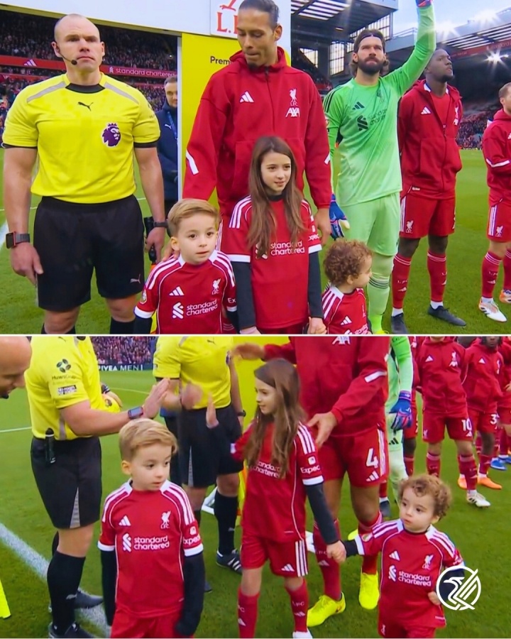 12月27日讯 利物浦vs狼队赛前,若塔的两个孩子作为球童入场。