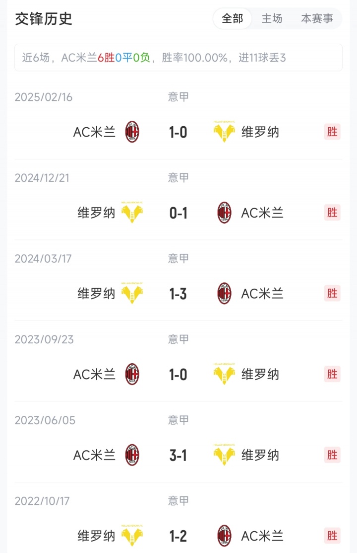 截至赛前,AC米兰9胜5平1负积32分,排名意甲积分榜第2;维罗纳2胜6平7负积12分,排名意甲积分榜第18。