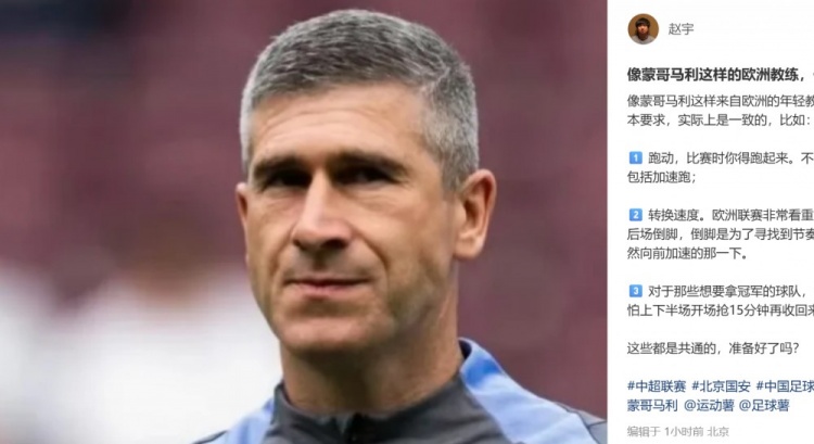 12月29日讯 对于与中超球队国安和蓉城传出绯闻的苏格兰教练蒙哥马利,媒体人赵宇在社媒发文介绍了这位欧洲少帅的执教理念。