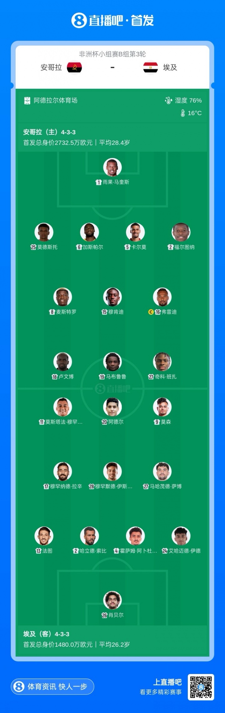 大轮换!埃及vs安哥拉首发:萨拉赫、马尔穆什替补