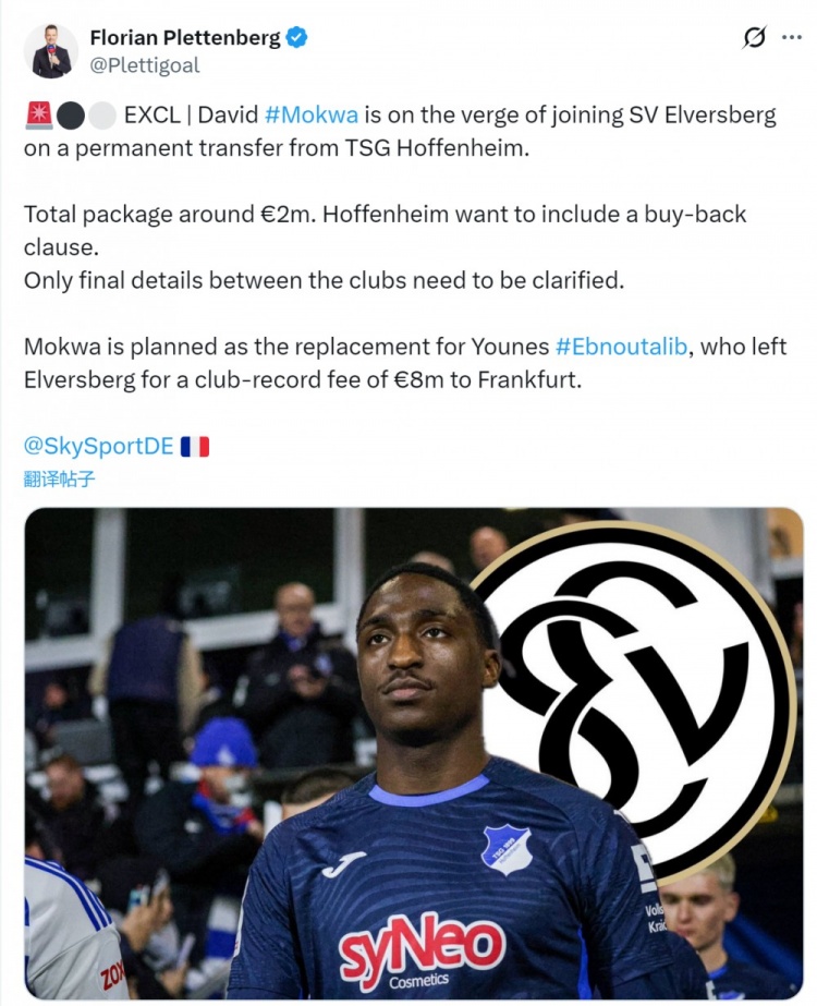 埃弗斯堡计划让穆库瓦填补埃布努塔利布留下的空缺,后者以创俱乐部纪录的800万欧转会费加盟法兰克福。