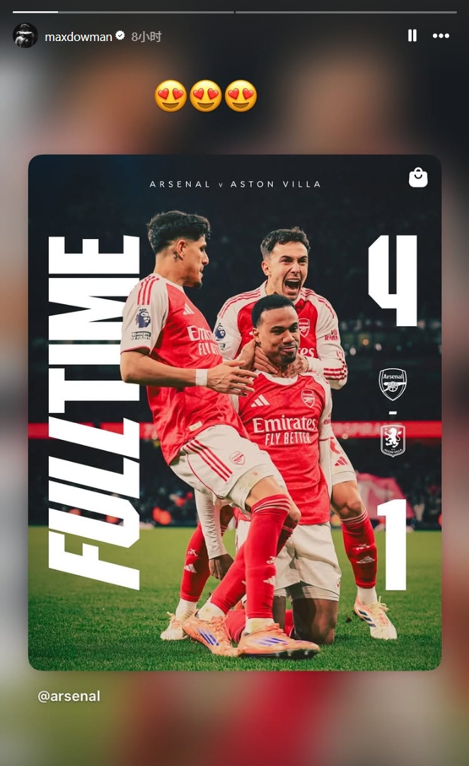 迎来16岁生日!因伤休战的道曼发社媒,庆祝阿森纳4-1大胜维拉