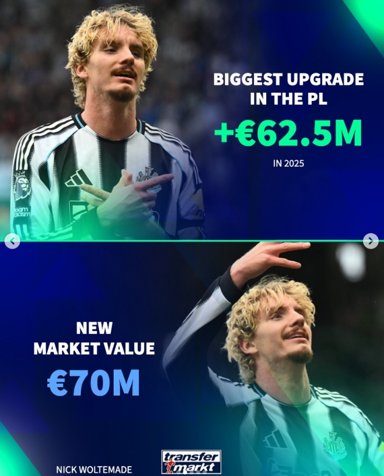 英超:沃尔特马德(纽卡,7000万),+6250万