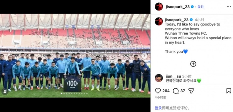 12月31日讯 今日,韩国后卫朴志洙更新社媒,向武汉三镇告别。