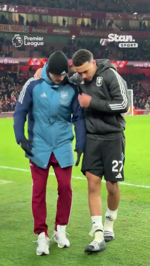 现场观战的他也在赛后同国家队友罗杰斯交流,他用手势示意自己的膝盖肿胀,并似乎告诉摩根·罗杰斯:“我的膝盖受伤了,太糟糕了!”