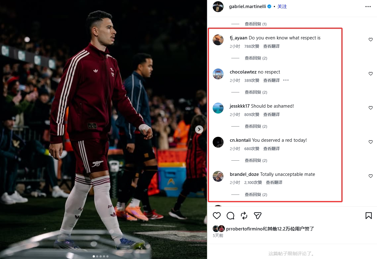 目前马丁内利INS评论区已经遭遇各种“网暴”