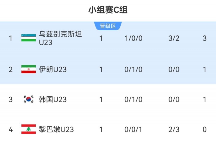 在首轮比赛中,黎巴嫩2-3不敌乌兹别克斯坦暂居小组垫底,韩国0-0战平伊朗排名小组第三。