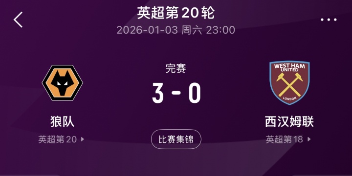 在英超第20轮,本赛季状态非常糟糕的狼队曾3-0大胜西汉姆联,取得球队目前联赛唯一的一场胜利。