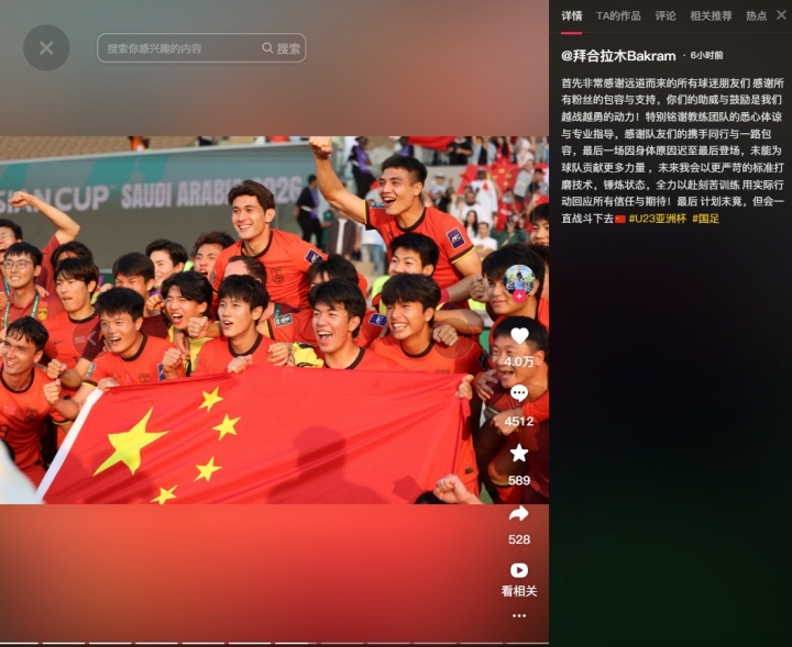 拜合拉木社媒发文:“首先非常感谢远道而来的所有球迷朋友们,感谢所有粉丝的包容与支持,你们的助威与鼓励是我们越战越勇的动力!特别铭谢教练团队的悉心体谅与专业指导,感谢队友们的携手同行与一路包容,最后一场因身体原因迟至最后登场,未能为球队贡献更多力量 ,未来我会以更严苛的标准打磨技术,锤炼状态,全力以赴刻苦训练,用实际行动回应所有信任与期待!最后,计划未竟,但会一直战斗下去。”
