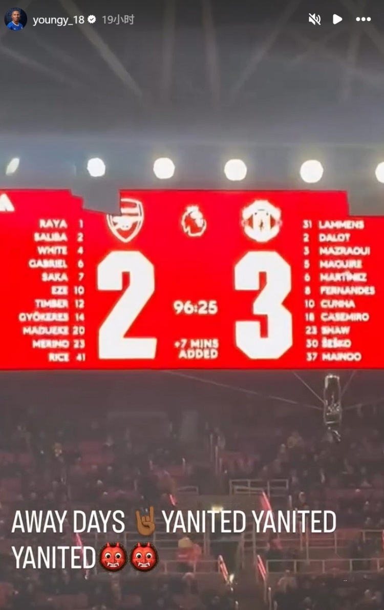 前曼联球员阿什利·扬来到现场观看本场比赛为老东家助威,他也在社媒晒出本场比分牌以及主帅卡里克赛后庆祝的视频,为卡里克送上祝贺。