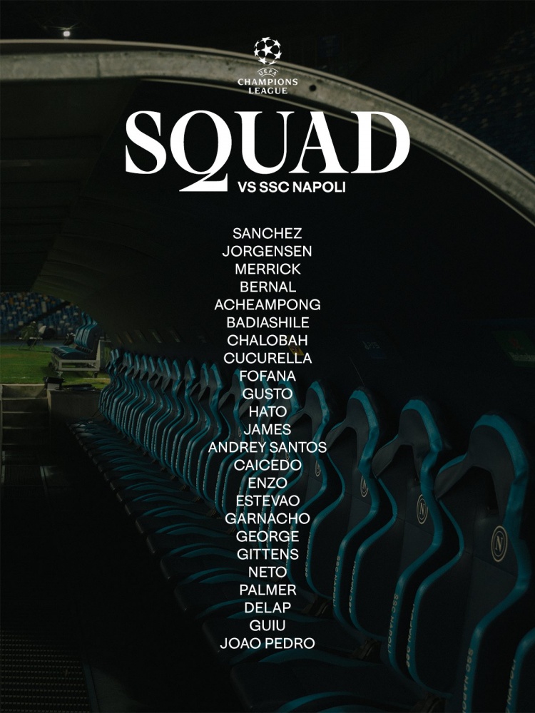 1月28日讯 北京时间明天凌晨4点,切尔西将在欧冠联赛最后一轮比赛中客场对阵那不勒斯,切尔西公布了此役的球员名单。