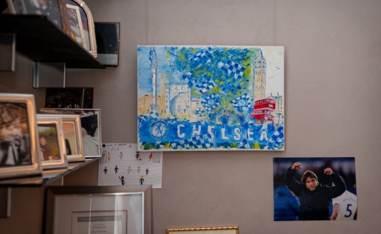 孔蒂家中的一件件珍藏,尽显他对斯坦福桥的骄傲与眷恋:整整一面墙的展示柜里摆满了奖杯,其中就有一座英超冠军复刻奖杯,还有他的冠军奖牌。
