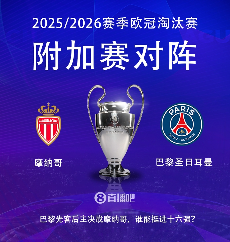 01月30日讯 2025/26赛季欧冠淘汰赛阶段附加赛抽签结果今日出炉,巴黎vs摩纳哥。巴黎先客后主,两队决战两回合争夺16强名额。巴黎去年同样在欧冠附加赛遭遇法甲内战,最终两回合10-0淘汰布雷斯特。