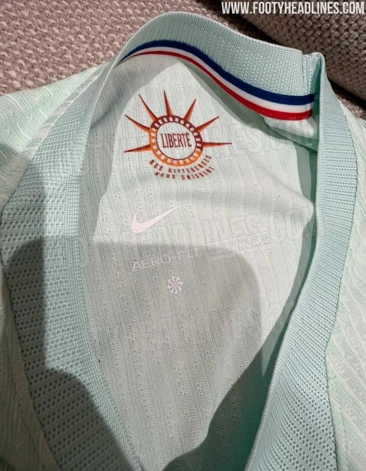 打几分?法国队世界杯客场球衣泄露,薄荷绿搭配自由女神像图案