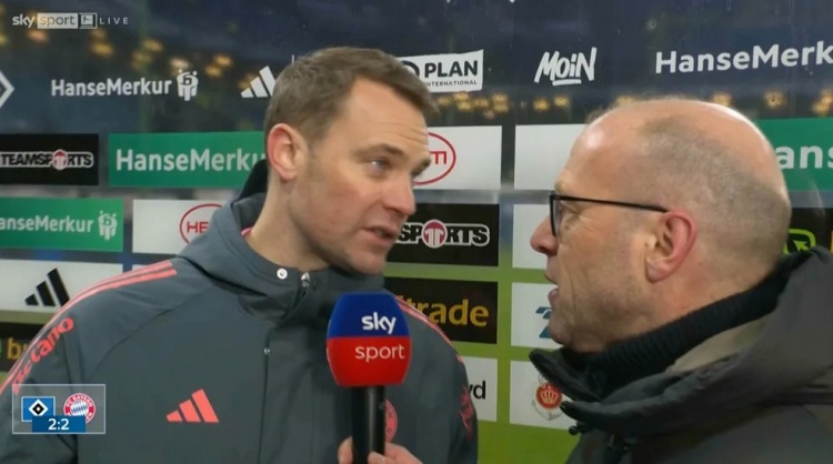 随后诺伊尔在握手后想迅速离开,天空电视台此时中断了采访。